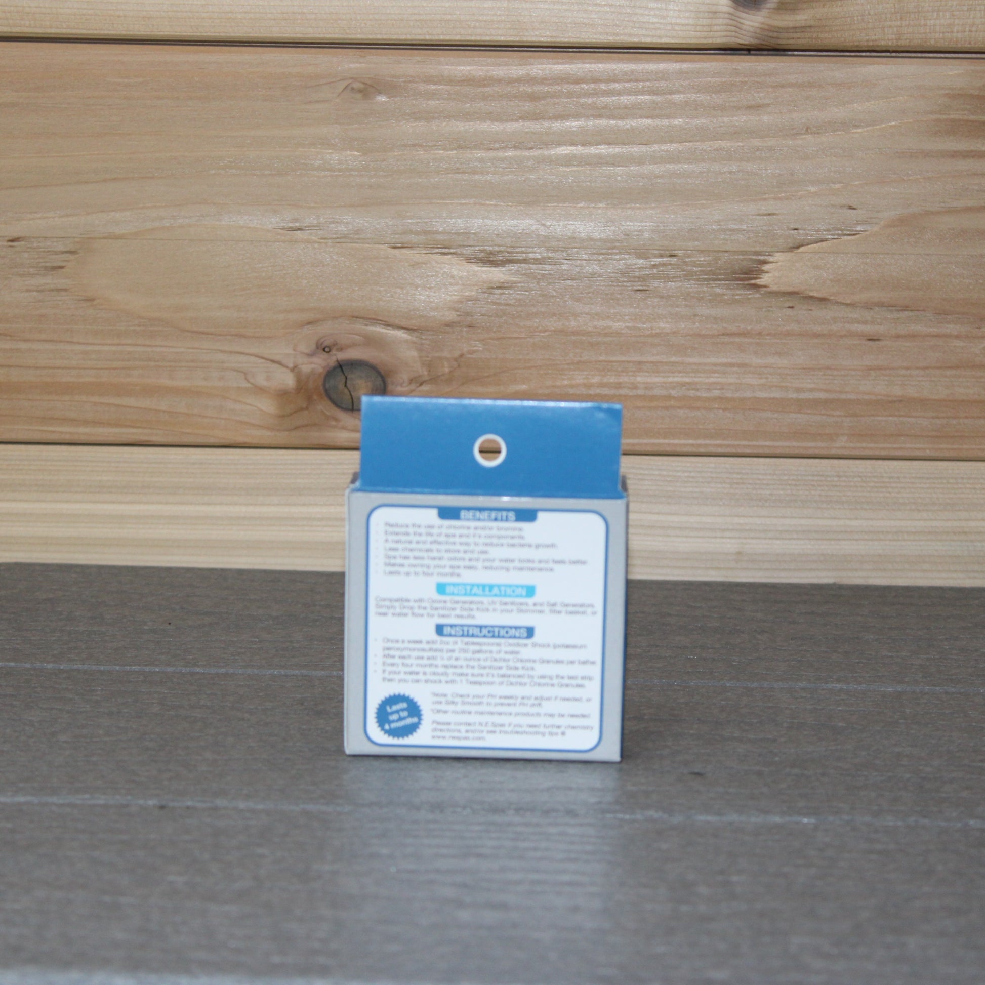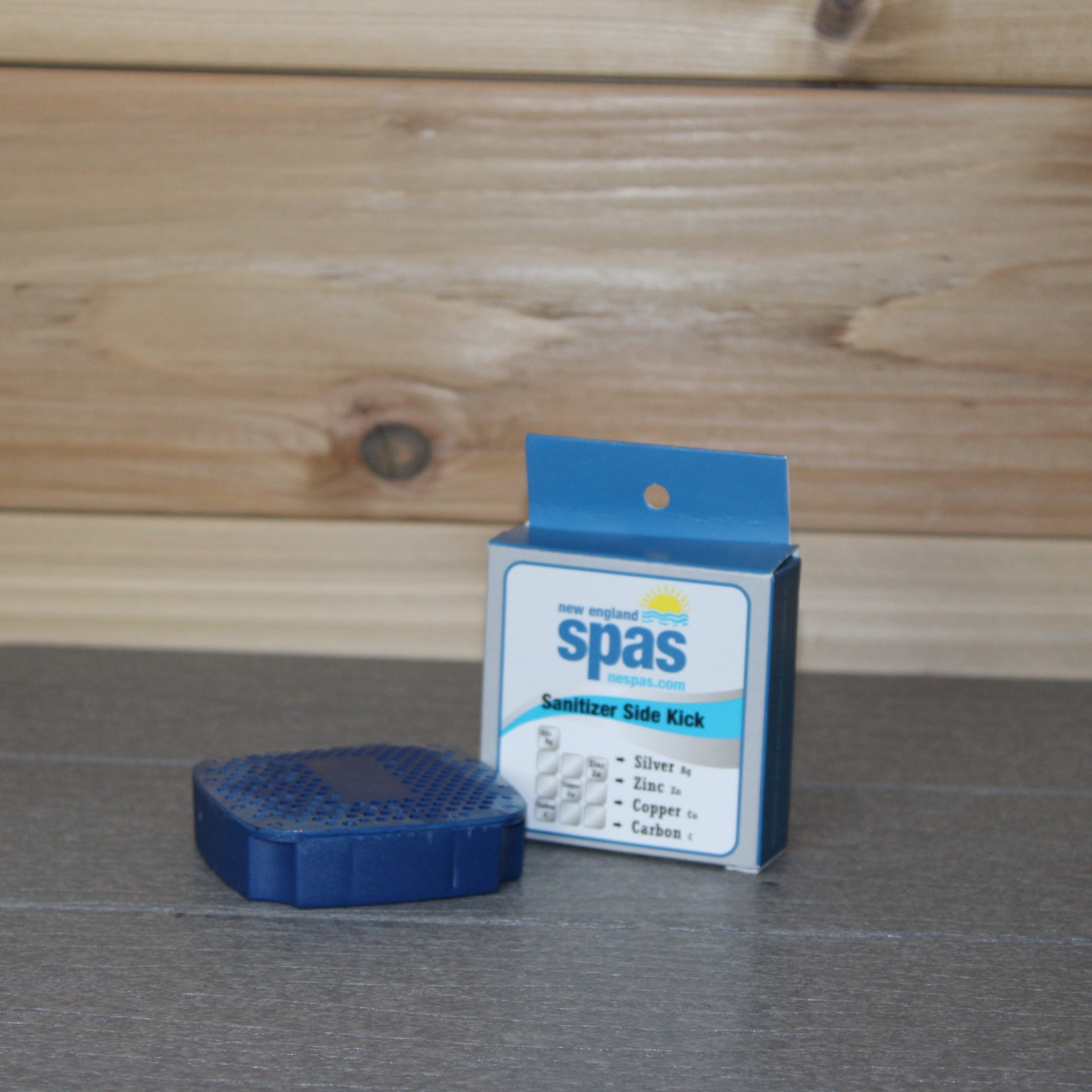Sanitizer SideKick helps reduce the amount of chlorine (or bromine) needed in regular maintenance. Packed with Silver, Carbon, Zinc, and Copper to help keep your hot tub water crystal clear. Simply place in your filter compartment. Replace every four months.