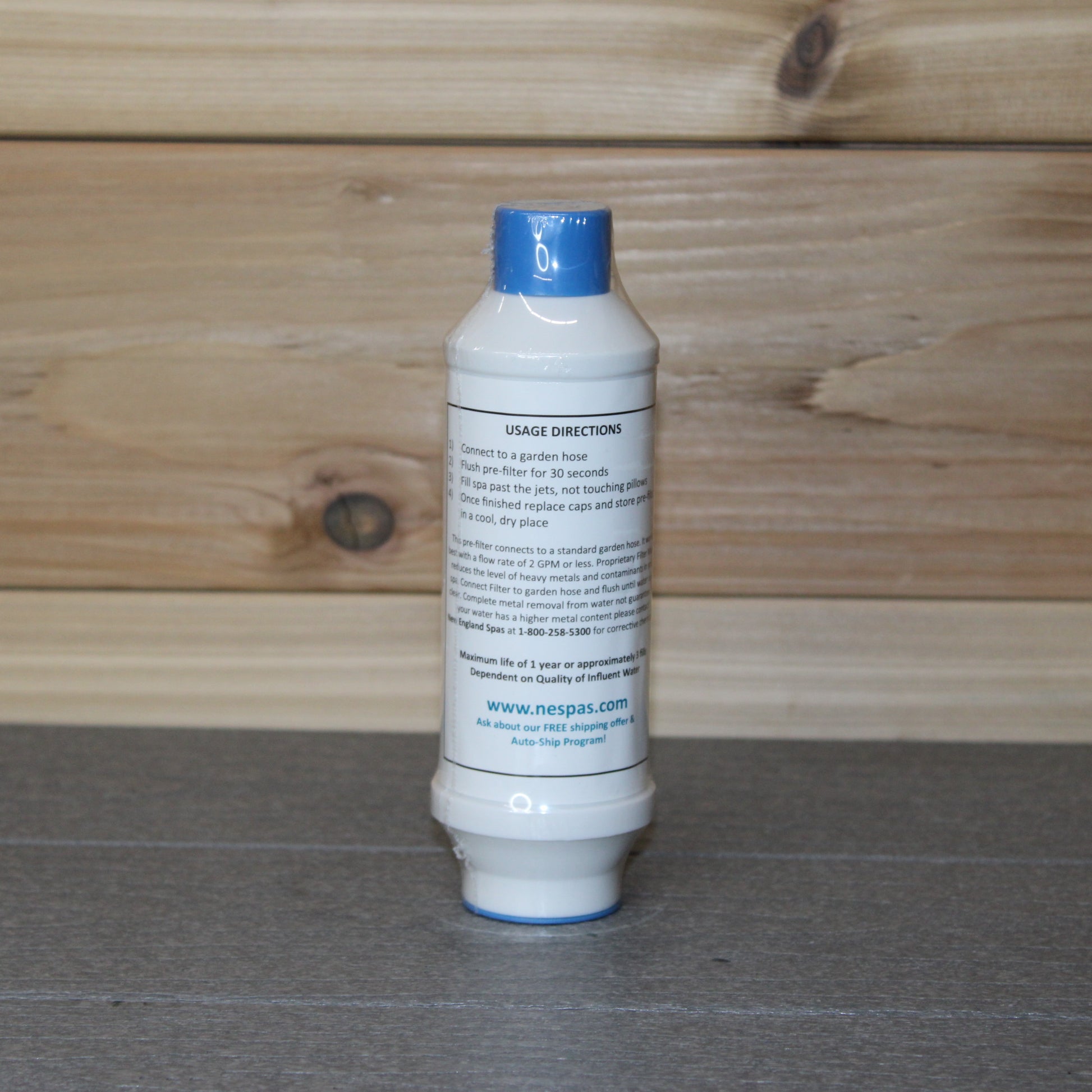 Pre-filter for crystal clear water. Reduces and/or removes heavy metals (up to 98%), suspended solids, TOCs & VOCs. Works well with city or well, hard or soft water. Attach to the end of your garden hose and run water through pre-filter for 15-30 seconds before filling your spa. Useful life is 1,200 gallons (approx. 3 refills for most spas).